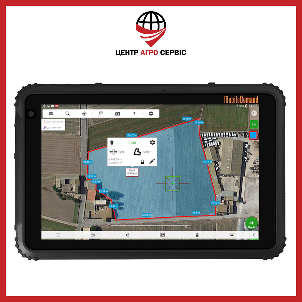 Mobile Demand — сучасна та точна система вимірювання полів (вимірювання площ, відстаней і периметрів). Планшет дасть змогу вимірювати площі будь-якої форми, зберігати їх на пристрої та переглядати в майбутньому. Також ви зможете вимірювати майданчики, що складаються з окремих ділянок, об'єднати їх і ділити за потреби. Ця система виступить чудовим інструментом у галузі точного рільництва. Ударостійкий, пило-водонепроникний, з захищеними роз'ємами ( ступінь захисту — IP67) ідеально підходить для роботи польових умов.
